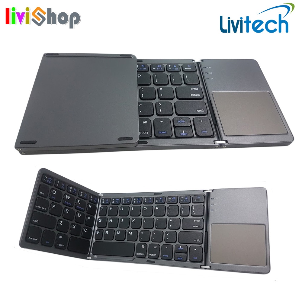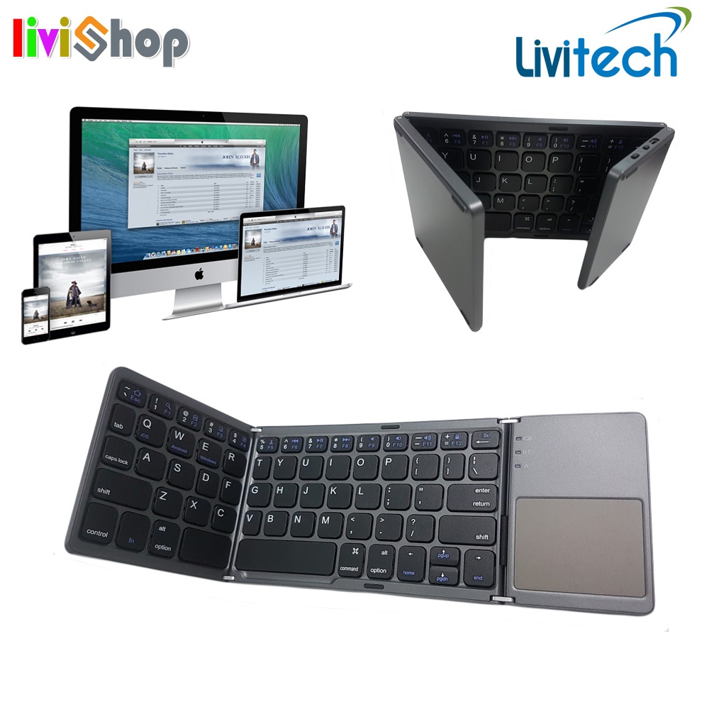 Bàn phim bluetooth B033 tích hợp bàn rẹ chuột Touchpad cho iPhone/ iPad /Talbet Android và Windows sử dụng kết nối Bluetooth 3.0 tốc độ cao, tiết kiệm pin . Với thiết kế đẹp, nhỏn gọn mà tinh tế và sang trọng bàn phím bluetooth B033 thật sự là một phụ kiện rất hữu ích và thú vị .Đặc biệt bàn phím Livitech F3 còn có thể xếp gọn lại khi không sử dụng giúp cho bạn có thể luôn mang theo bên mình để sử dụng mọi lúc mọi nơi .