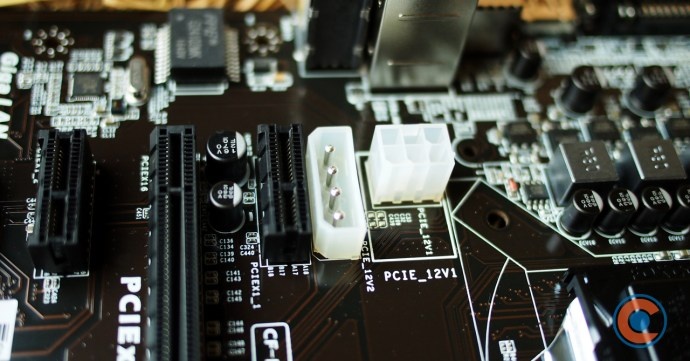 Điểm nhấn mang đến sự ổn định về điện năng tốt nhất, 2 đầu cấp nguồn phụ cung cấp thêm năng lượng riêng chỉ cho các khe cắm PCIe mà thôi, thông thường thiết kế này chỉ có ở các mainboard cao cấp và chế độ đồ họa đa nhân 3-4 VGA như 3-way SLI.