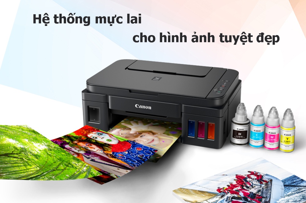 Máy in phun màu Canon Pixma G2000 tiết kiệm mực với hệ thống mực lai, kết hợp giữa mực đen gốc dầu và mực màu nhuộm cho hình ảnh tuyệt đẹp trên nền giấy ảnh chính hãng của Canon, và những trang in tài liệu sắc nét. Các động cơ in linh hoạt giúp in ảnh không viền 4R chỉ trong 60 giây và có thể in tới cỡ A4.