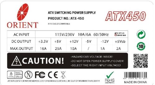 Thương hiệu: Orient SKU: OR391ELAA1JUYCVNAMZ-2526314 Dòng sản phẩm: May Tinh Minh Chau-Orient Power Supply 450W Loại bảo hành: Bảo hành bởi nhà bán hàng trong nước Số cáp SATA: 4 Thời gian bảo hành: 12 tháng
